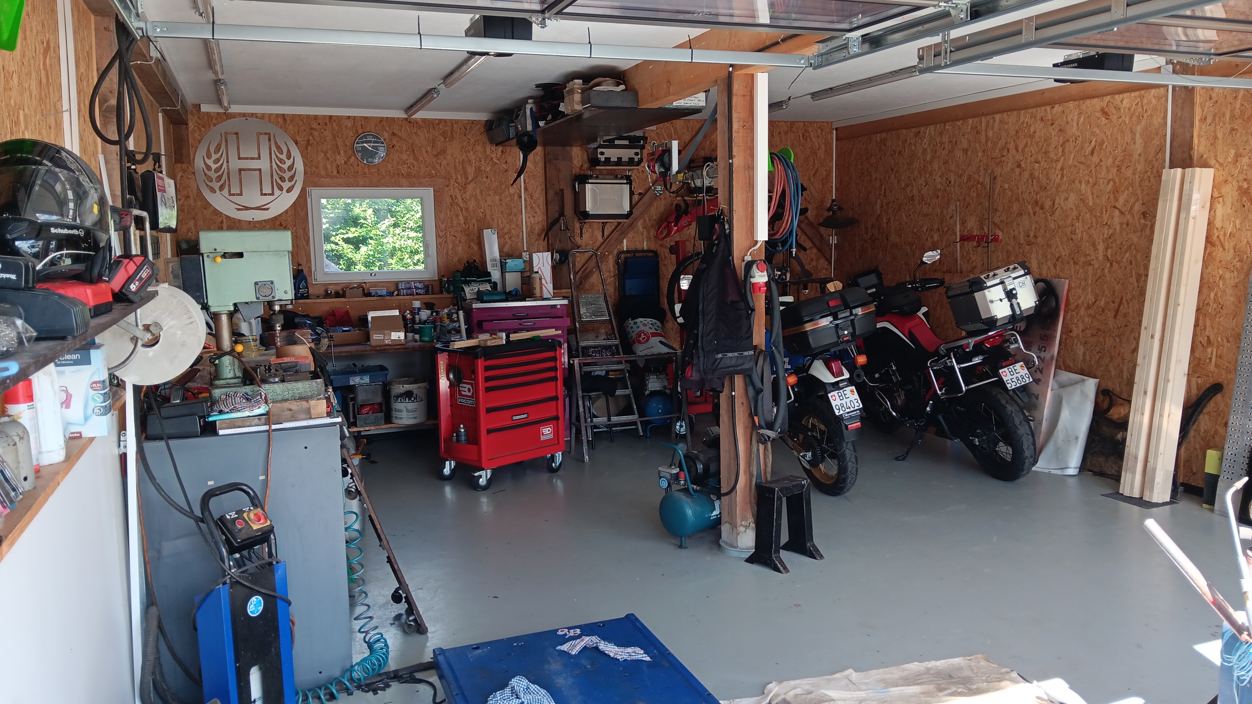 - Rez supérieur : garage/atelier 194 m² + bureau 44 m² + WC
