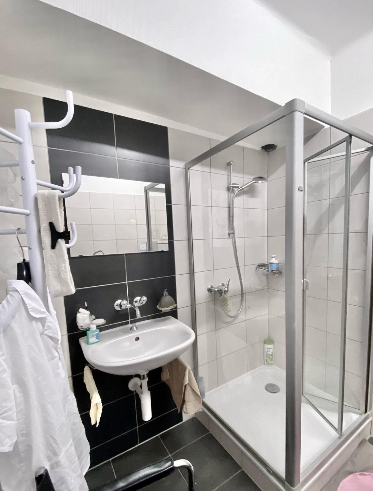 - Salle de bain moderne avec douche : Conçue pour votre confort quotidien.